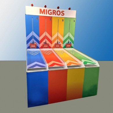 Kompakt oder skalierbar für variable Einsätze von Point of Sale bis Messe, Gewinnklassen möglich, Spiel-Start individuell wählbar